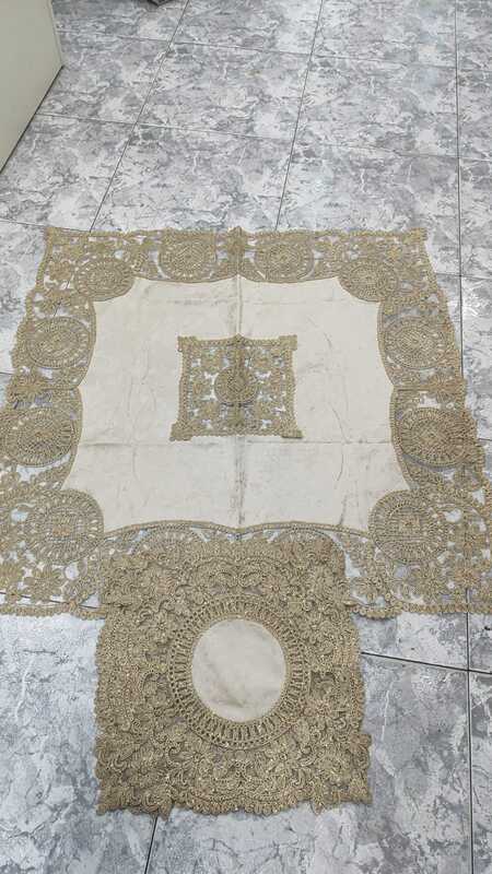 طقم وسط طاولة مخمل مع دنتيل تركي